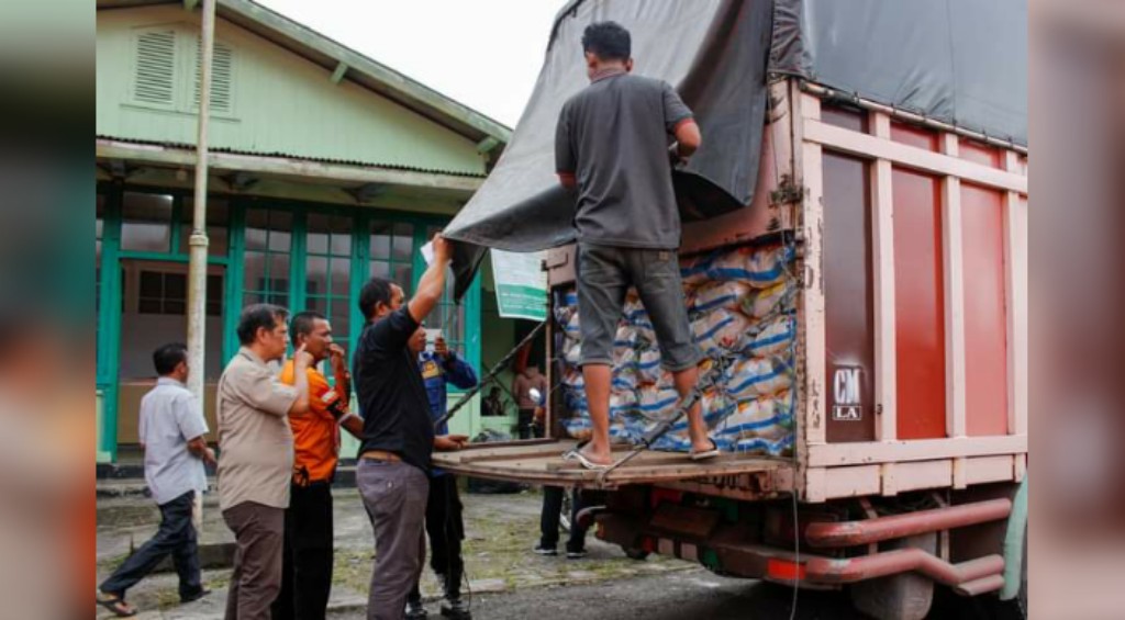 Usai diterima, bantuan ini disalurkan keesokan harinya. Dipimpin Kepala BPBD Kesbangpol, I Putu Venda paket sembako itu diserahkan ke Posko Siaga Bencana Kelurahan Silaing Bawah dan Pasar Usang di Kecamatan Padang Panjang Barat.