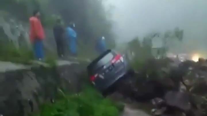 Selain itu, longsoran tebing jalan itu juga menimpa satu unit mobil minibus yang terseret hingga ke dalam parit. Beruntung peristiwa itu tidak menelan korban jiwa.