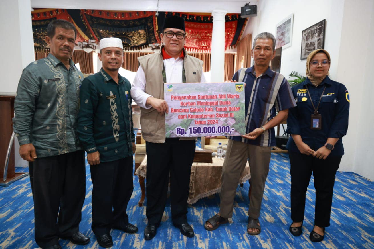 Langgam.id – Kementerian Sosial (Kemensos) RI menyerahan santunan bagi 10 orang ahli waris korban hilang bencana banjir bandang dan tanah longsor di Tanah Datar.
