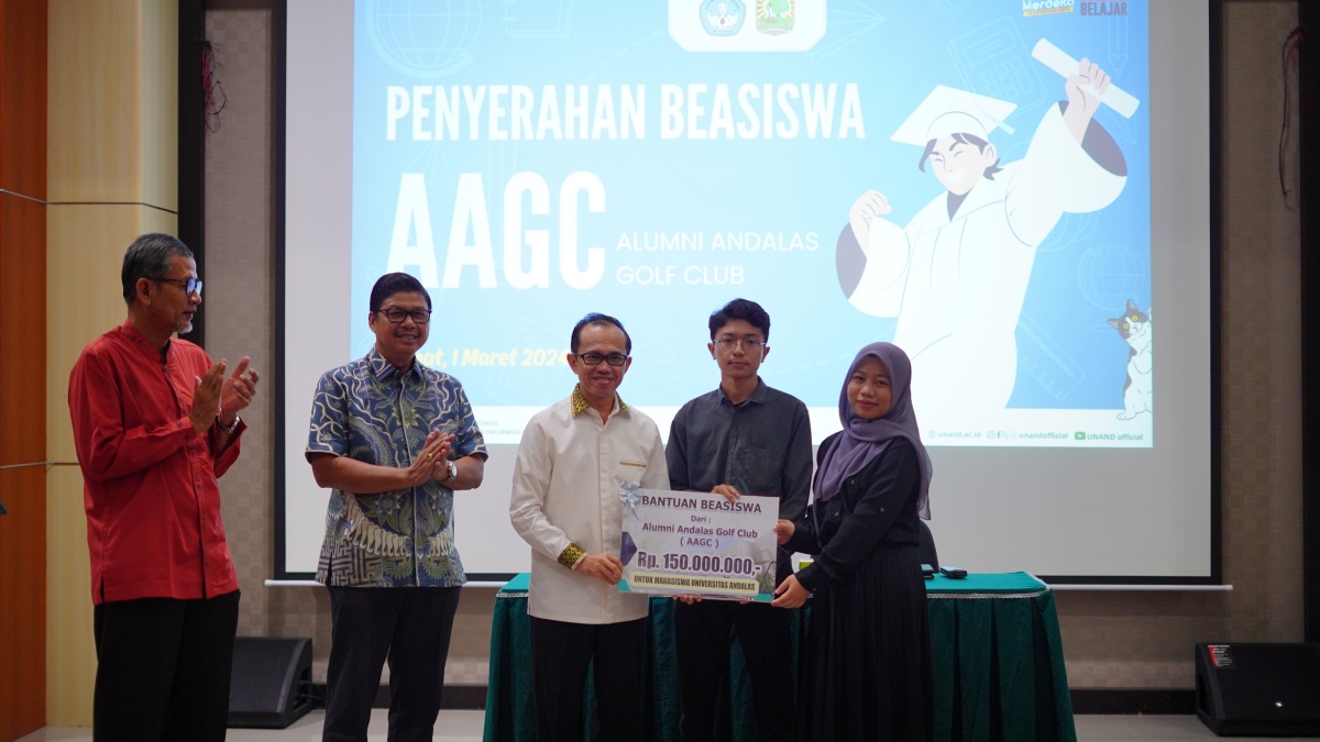 Langgam.id – Universitas Andalas (Unand) menerima beasiswa senilai Rp200 juta dari Alumni Andalas Golf Club (AAGC) dan Komunitas Askrida dalam rangka meningkatkan kesejahteraan mahasiswanya.