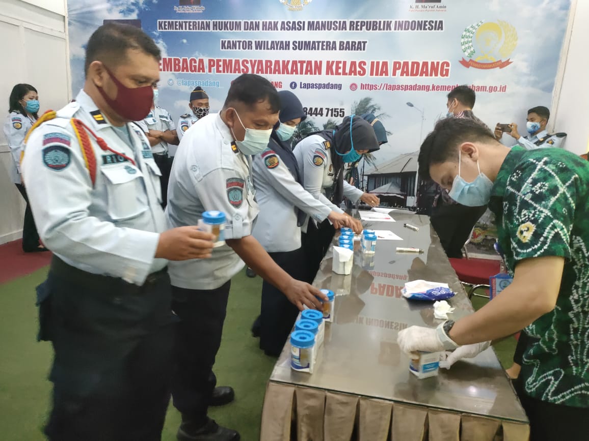 Para petugas dan pegawai Lapas Kelas II Muaro Padang menjalani pemeriksaan urine. (foto: infopublik.id)