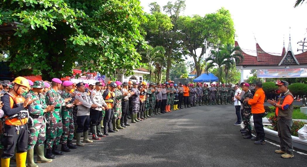 Saat apel gabungan di halaman Indo Jolito, Batusangkar pada Jumat (17/5/2024), Eka Putra mengharapkan kepada seluruh personel untuk mengutamakan keselamatan dan kewaspadaan selama melakukan pencarian korban.