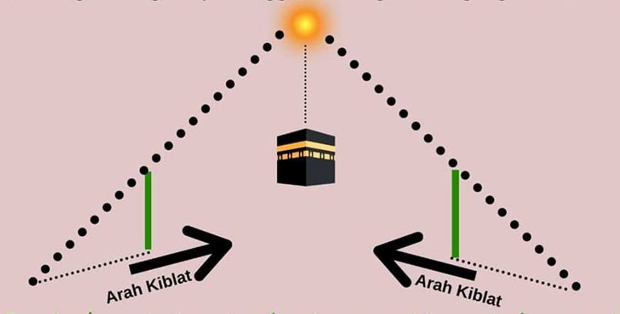 3. Arah kiblat mengarah dari ujung bayangan menuju batang itu.