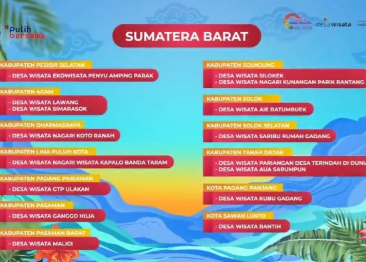 Berikut 16 desa wisata di Sumbar yang masuk 300 besar ADWI 2022 dikutip dari laman Instagram @anugerahdesawisataindonesia: