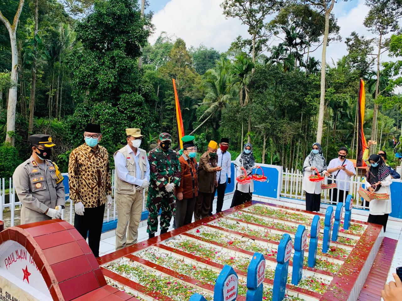 Penghargaan diberikan usai upacara tabur bunga di Makam Pahlawan Lurah Kincia, Nagari Situjuah Batua, Jumat (15/1/2021). Dari 16 tokoh sipil dan militer yang mendapat penghargaan tersebut, sebanyak 9 orang merupakan pahlawan yang gugur pada 15 Januari 1949.