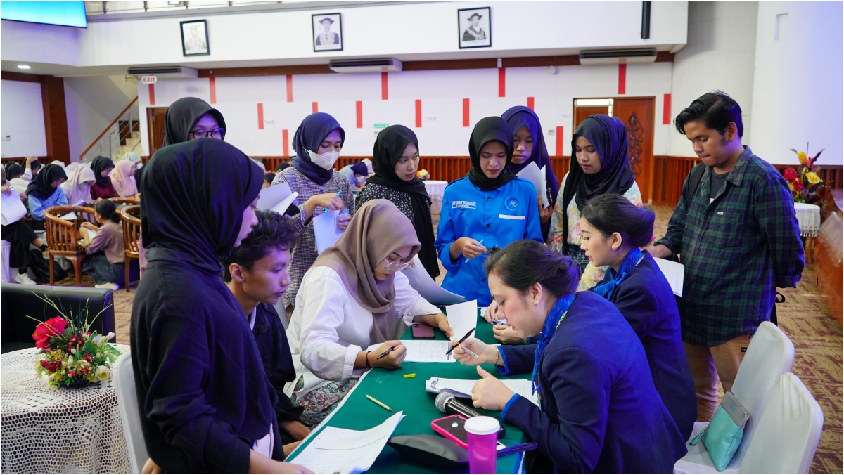 Mahasiswa ini terdiri dari berbagai Program Studi (Prodi) seperti Kimia, Farmasi, Sejarah, Peternakan, Kesehatan Masyarakat, Kedokteran Gigi, Ekonomi, Hukum dan lainnya diminta mengisi formulir pendaftaran untuk mengisi identitas diri.
