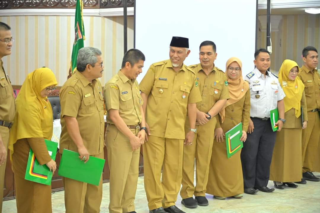 Penegasan itu disampaikan Gubernur Mahyeldi saat agenda Penyerahan Suat Keputusan (SK) tentang Kenaikan Pangkat bagi 2.118 Pegawai Negeri Sipil (PNS) periode 1 Oktober 2023, di lingkungan Pemerintah Provinsi dan Kabupaten/Kota se-Sumatra Barat, bertempat di Aula Kantor Gubernur Sumbar.