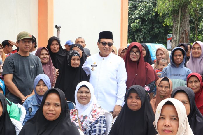 Pj Wali Kota Payakumbuh, Jasman memberikan apresiasi kepada seluruh pihak yang terlibat dalam pelaksanaan program penyaluran bantuan pangan sembari berinteraksi secara langsung dengan warga yang menerima bantuan.
