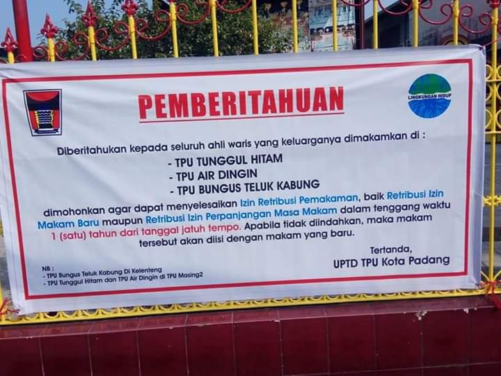 Kepala Unit Pelaksana Teknis Daerah Tempat Pemakaman Umum (UPTD TPU) Kota Padang Linda Afriani mengatakan, di Kota Padang, Sumatera Barat ada tiga TPU beretribusi yaitu TPU Air Dingin Lubuk Minturun, TPU Tunggul Hitam, serta TPU Bungus.
