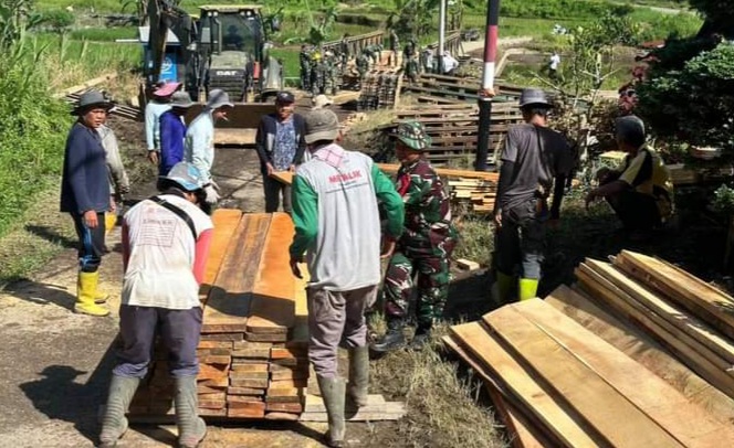 Refdizalis mengatakan, Detasemen Zeni Tempur (Denzipur) TNI juga membantu pembangunan jembatan bailey di sejumlah titik.