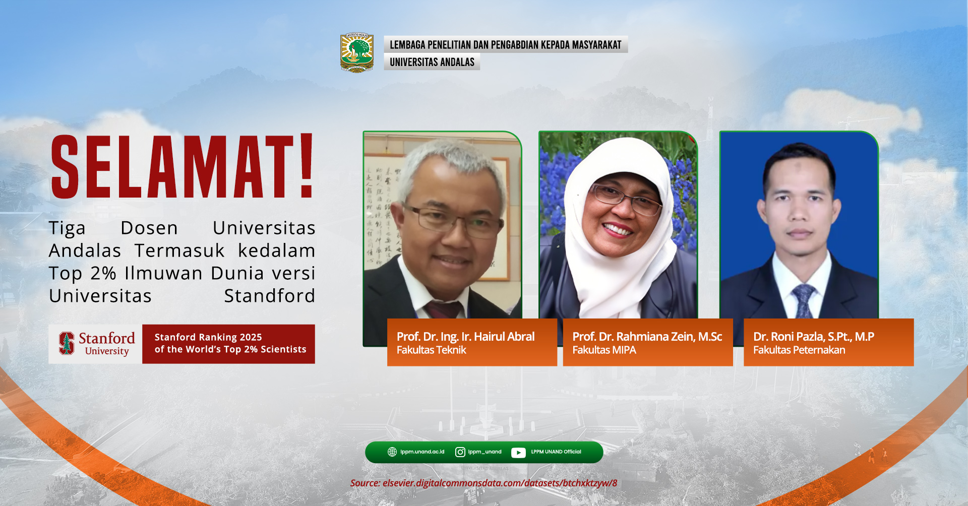 Langgam.id – Tiga dosen Universitas Andalas berhasil masuk dalam daftar 2 persen ilmuwan terbaik dunia versi Universitas Stanford, Amerika Serikat.