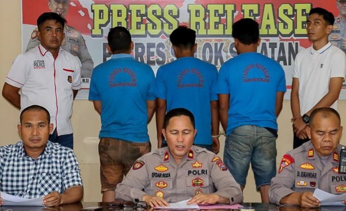 Ketiga tersangka yang diamankan tersebut yaitu RF (23), RR (34) dan AP (49). Selain ketiga tersangka, polisi juga mengamankan satu unit alat berat ekskavator yang sedang melaksanakan aktivitas tambang emas ilegal.
