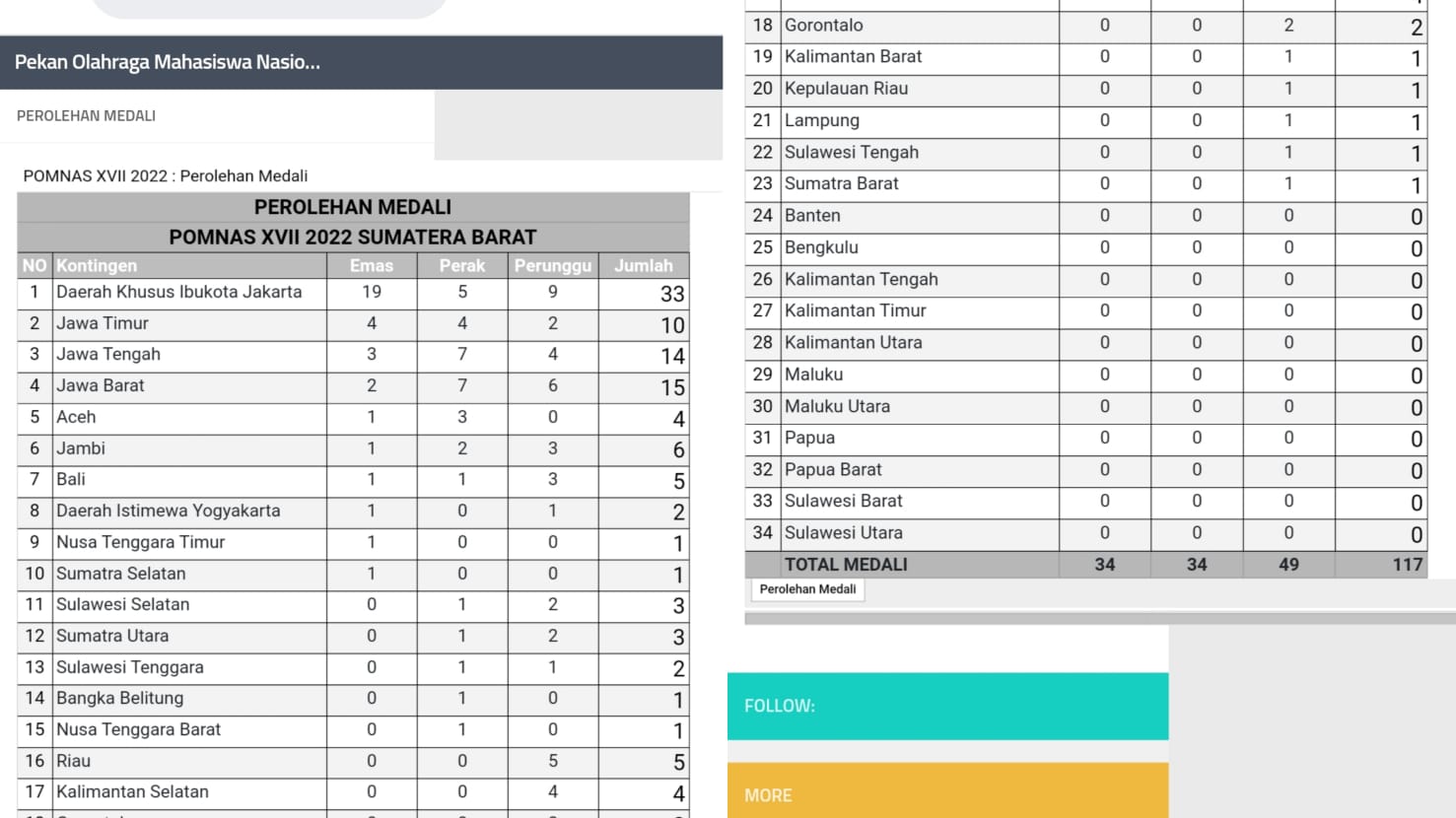 Baca Juga: Klasemen Pomnas Padang Sabtu: DKI Jakarta Kokoh di Puncak, Sudah 16 Provinsi Dapat Medali