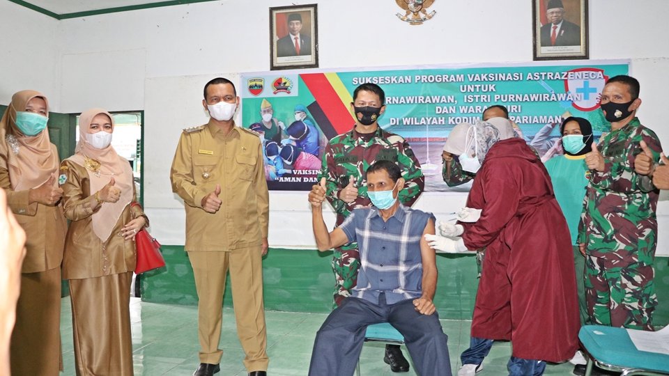 Langgam.id – 400 orang purnawirawan dan pensiunan TNI Kodim 0308 Pariaman beserta istri disuntik vaksin Astra Zeneca di Aula Kodim 0308 Pariaman. Kegiatan vaksinasi dilakukan selama empat hari, pada hari pertama 180 orang yang terdata untuk divaksin.