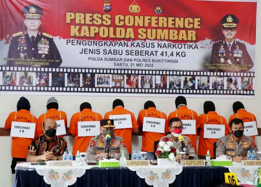 Langgam.id – Kepala Kepolisian Daerah (Kapolda) Sumatra Barat (Sumbar) Irjen Pol Teddy Minahasa Putra menyebutkan, pengungkapan kasus penyalahgunaan narkotika jenis sabu seberat 41,4 kilogram di Bukittinggi merupakan pengungkapan kasus sabu terbesar di Sumbar sepanjang sejarah.