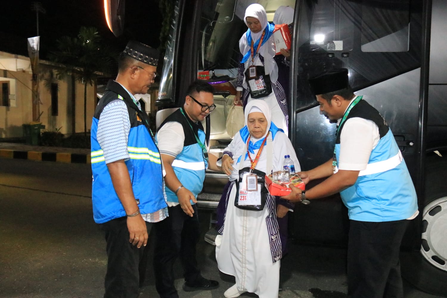 Hal ini terlihat saat kedatangan jemaah haji kloter 8 di Asrama Haji, Kamis (15/5) malam. Kedatangan jemaah juga disambut Ketua PPIH, Mahyudin didampingi Kabid PHU, M. Rifki bersama seluruh PPIH dan P3IH. Turut melayani Koordinator Konsumsi, Rosnimar Mahyudin bersama anggota.