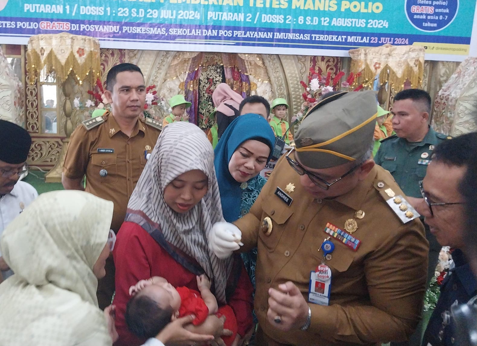 Pj Wali Kota Padang, Andree Algamar resmi melaunching gerakan perlindungan bagi anak usia 0-7 tahun dari penyakit polio. Kegiatan ini