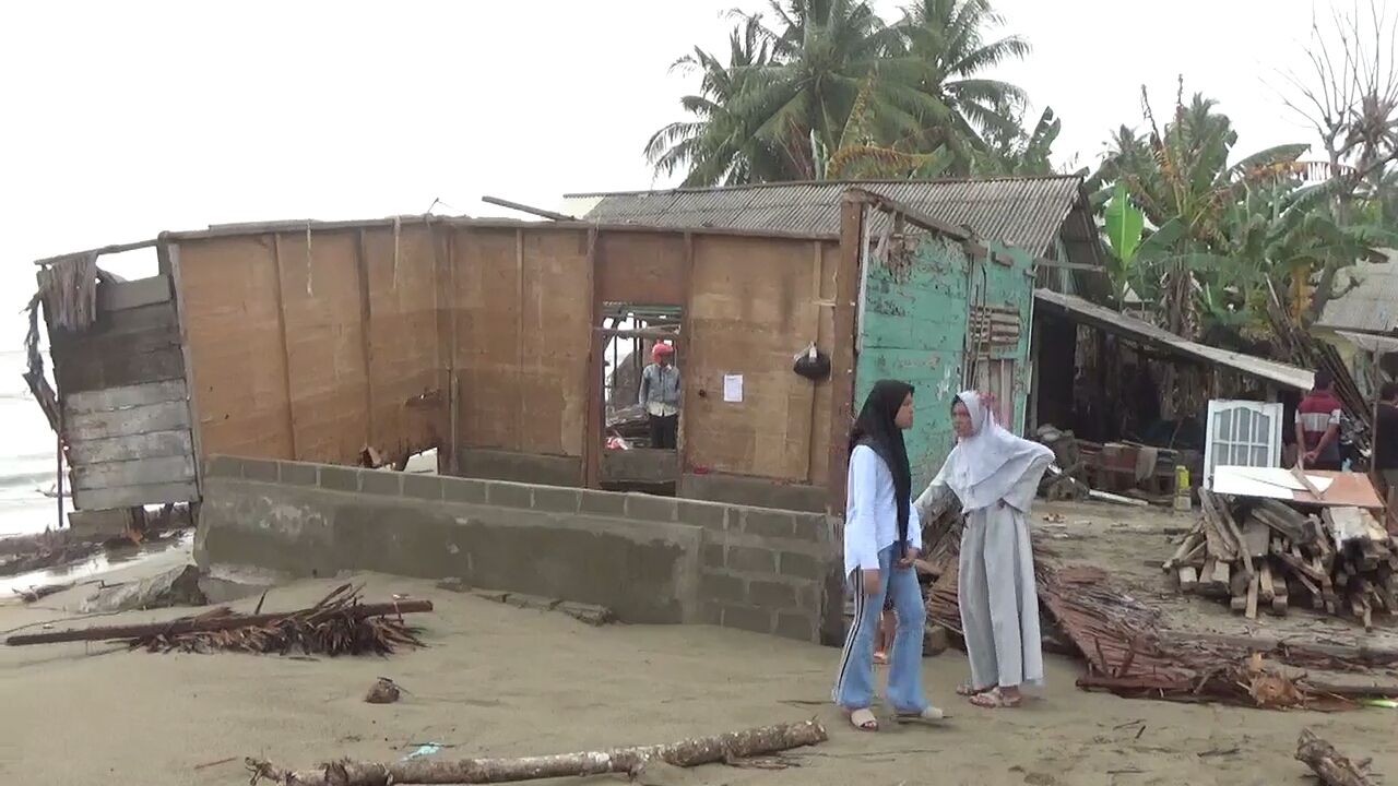 Saat itu, lanjut Boni,ketinggian ombak mencapai sekitar 5 meter. Saat ini, warga yang bermukim di sekitar bibir pantai terpaksa mengungsi di tenda dan sebagian menumpang di rumah warga lainnya.
