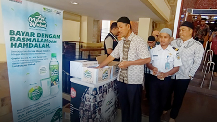 Tidak hanya di Masjid Jabal Rahmah Indarung, Air Minum Wakaf ini juga hadir sebanyak dua dus di Car Free Day (CFD) GOR H. Agus Salim Padang, Minggu (23/02/2020).