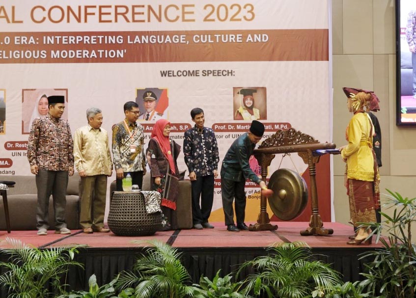 Pembukaan yang digelar di auditorium Grand Ballroom 2 ZHM Premiere Hotel Padang tersebut ditandai dengan pemukulan gong yang didampingi oleh Dekan FAH UIN IB, Ketua ADIA, dan narasumber konferensi.