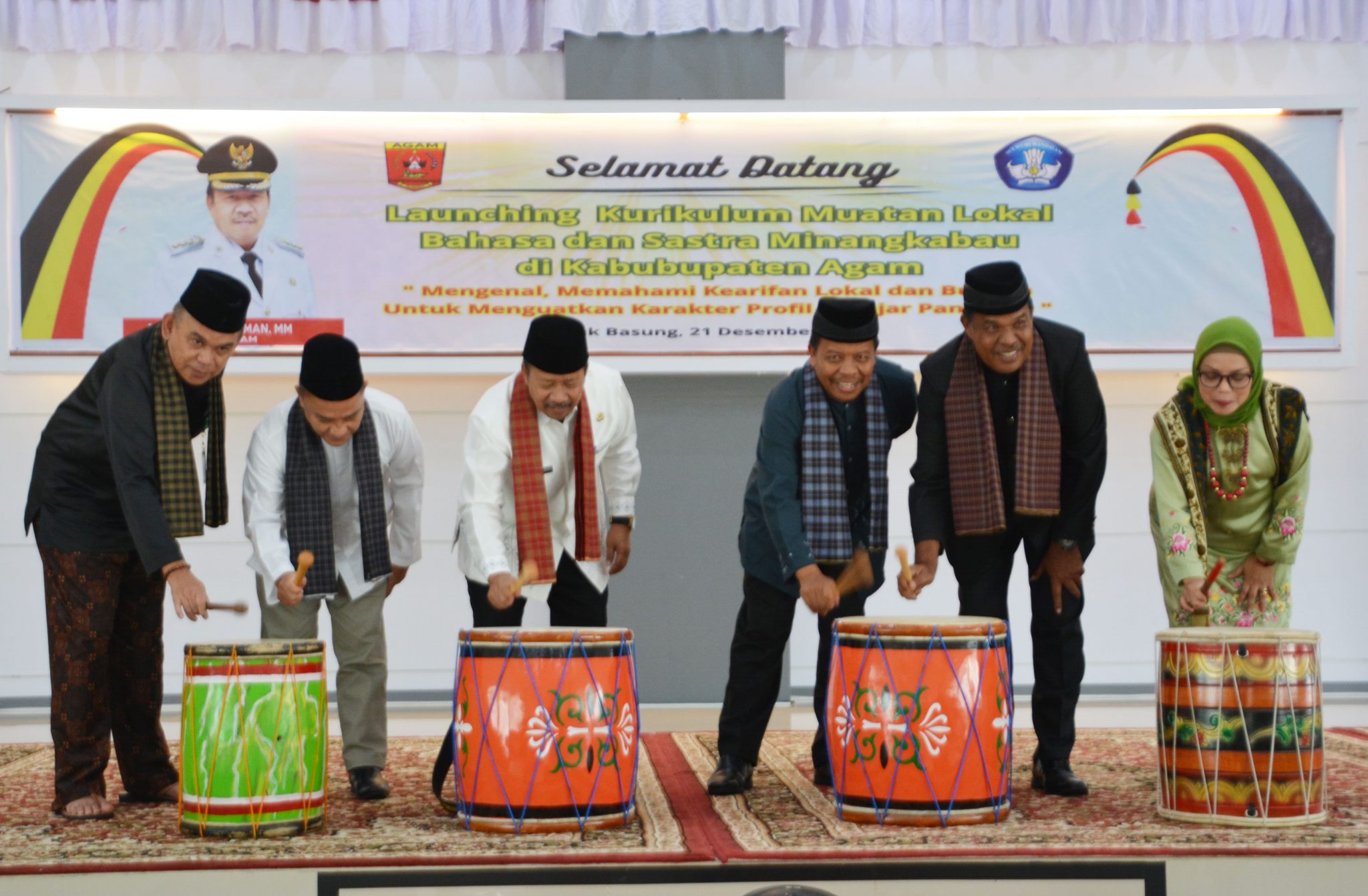 Langgam.id – Bupati Agam Andri Warman melaunching kurikulum muatan lokal bahasa dan sastra Minangkabau di Balairung Rumah Dinas Bupati Agam Lubuk Basung, Kamis (21/12).