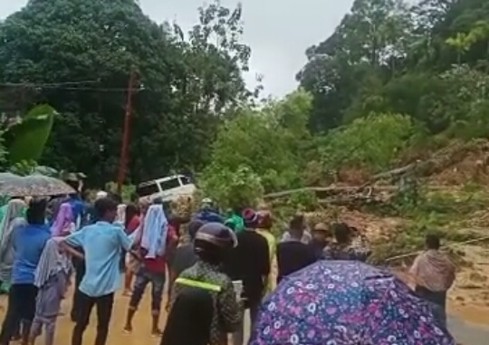 Material longsor berupa tanah dan pohon mengakibatkan jalur Kabupaten Pesisir Selatan ke Bengkulu via Bukit Pulai lumpuh total. Informasi yang diperoleh, satu unit minibus juga terdampak material longsor.