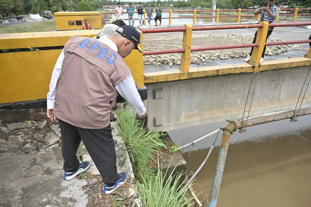 Saat peninjauan, Gubernur Mahyeldi tidak hanya memantau dari kejauhan, tapi ia turun langsung ke bibir sungai untuk melihat langsung kondisi jembatan kembar tersebut. Terlihat, memang di bagian bawah jembatan tanahnya sudah berongga akibat tergerus air.