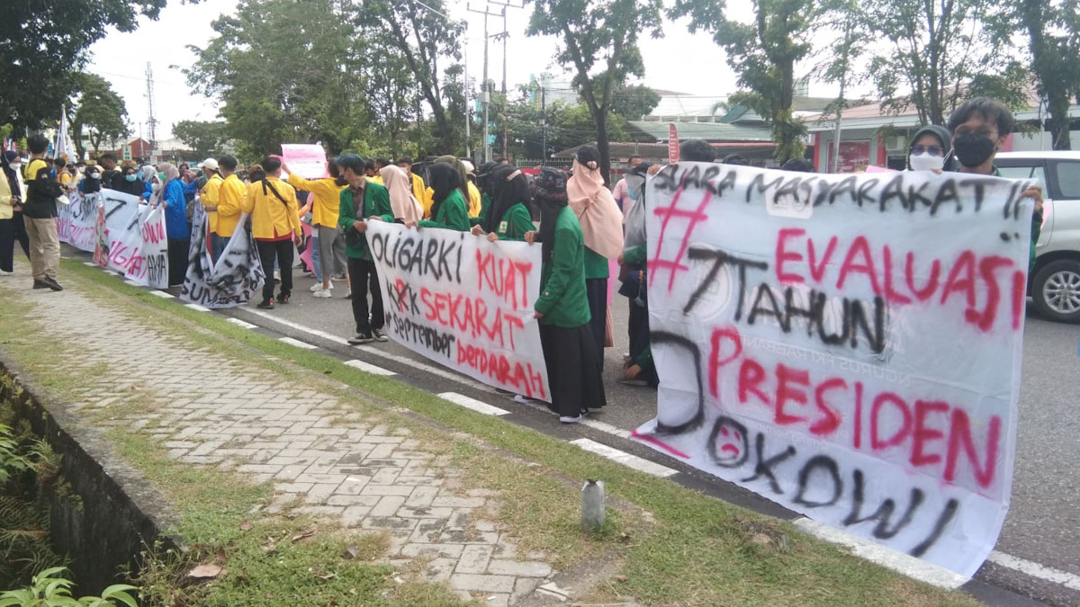Koordinator Lapangan BEM SB dari Yondra, dalam orasinya menyebut kepemimpin Jokowi dalam 7 tahun ini terdapat banyak kegagalan. Para mahasiswa berharap akan terjadi perubahan dalam kepemimpin Jokowi kedepannya.
