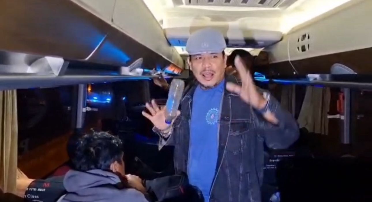 David Wewe memberhentikan bus. Ia masuk ke dalam bus, memukul-mukul botol mineral ke tangannya, dan bernyanyi lagu “potong bebek angsa”.