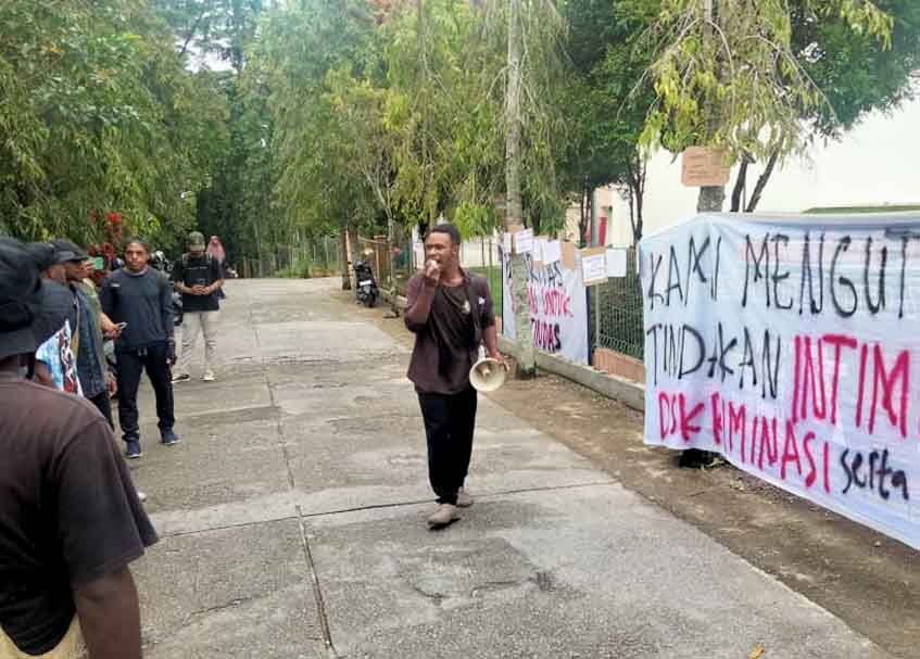 Aksi protes mahasiswa Papua ke Asrama Unand. [Foto: Irwanda/langgam.id]