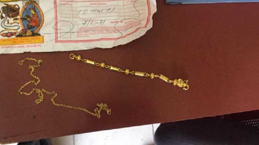 Selain menangkap kedua tersangka, tim gabungan juga mengamankan sejumlah barang bukti. “Berupa satu buah kalung emas seberat lebih kurang 15 emas (37,5 gram), sehelai faktur toko mas tanggal 2 Mei 2021,” menurut keterangan itu.