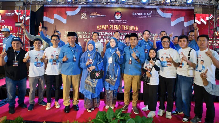 Mereka ikut meramaikan pencabutan nomor urut pasangan calon gubernur dan wakil gubernur Sumbar, di Hotel Pangerang Beach, Senin (23/9/2024).