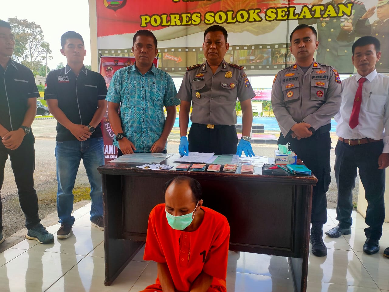 Pelaku diamankan tim opsnal Hajar Bandit (Jarjit) Polres Solok Selatan, Rabu (11/3/2020). Dengan memiliki foto vulgar korban, pelaku melakukan pemerasan sehingga korban mengalami kerugian sebesar Rp4,2 juta.