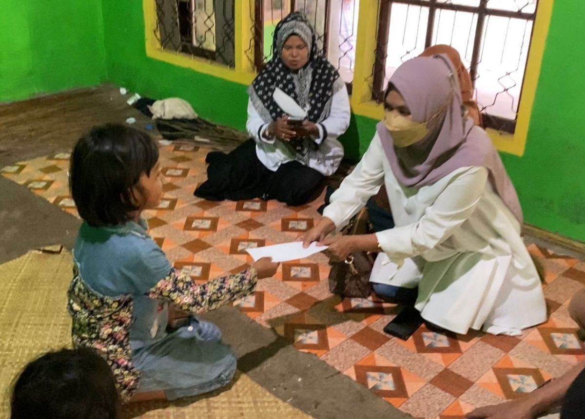 Bersama Kepala SMPN 2 Ranah Pesisir Irmaya Chandra, Wakil Ketua DPD Gerindra Sumbar Nurhaida, Zulkifli (wakil sekretaris) dan Tin Karmila (wakil bendahara) mengantaran bantuan langsung ke rumah Rara yang tinggal bersama neneknya.