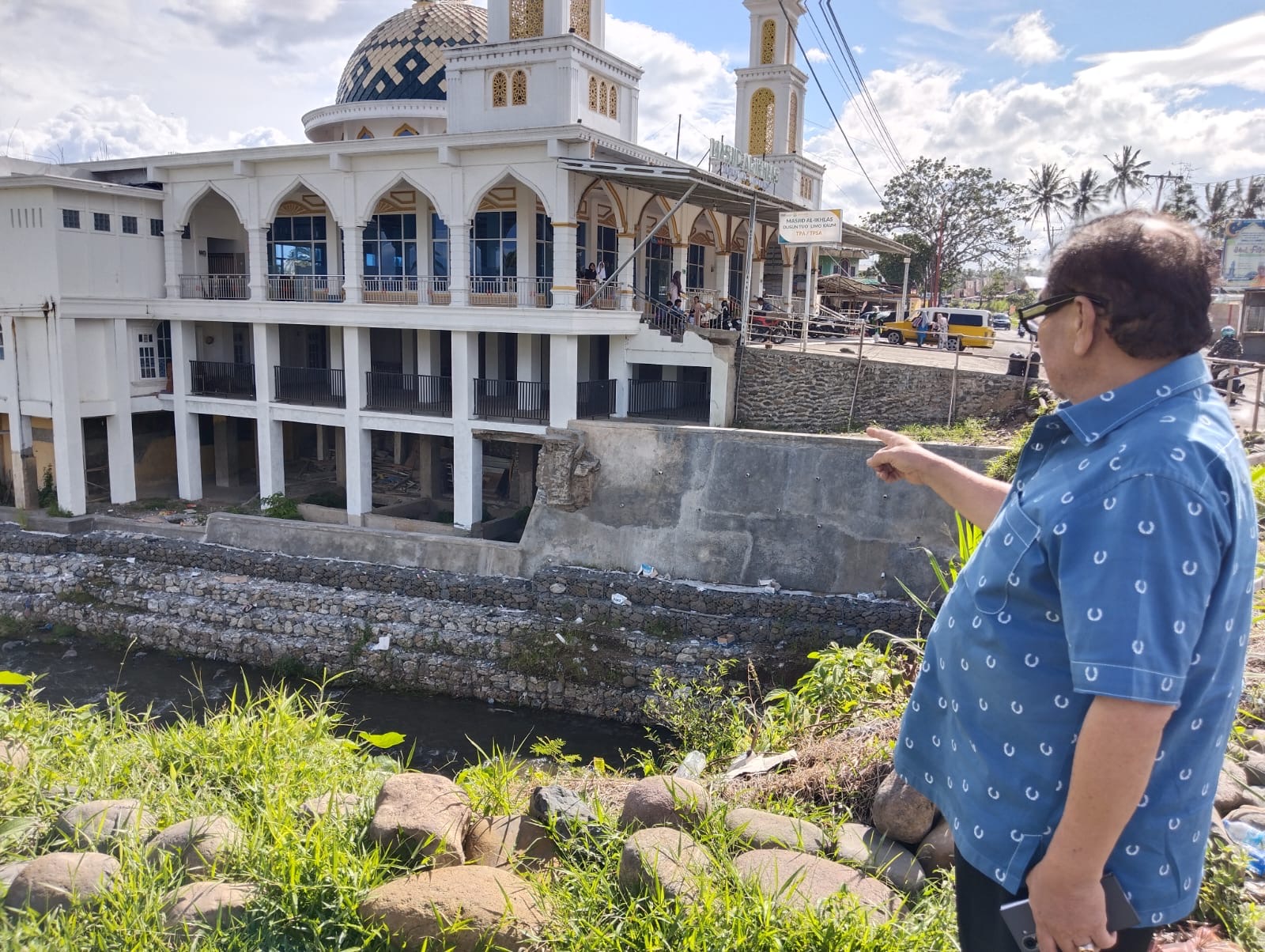 Shadiq meninjau sejumlah titik penting seperti jembatan penghubung yang putus, abrasi aliran sungai, serta lahan pertanian masyarakat yang mengalami kerusakan parah.