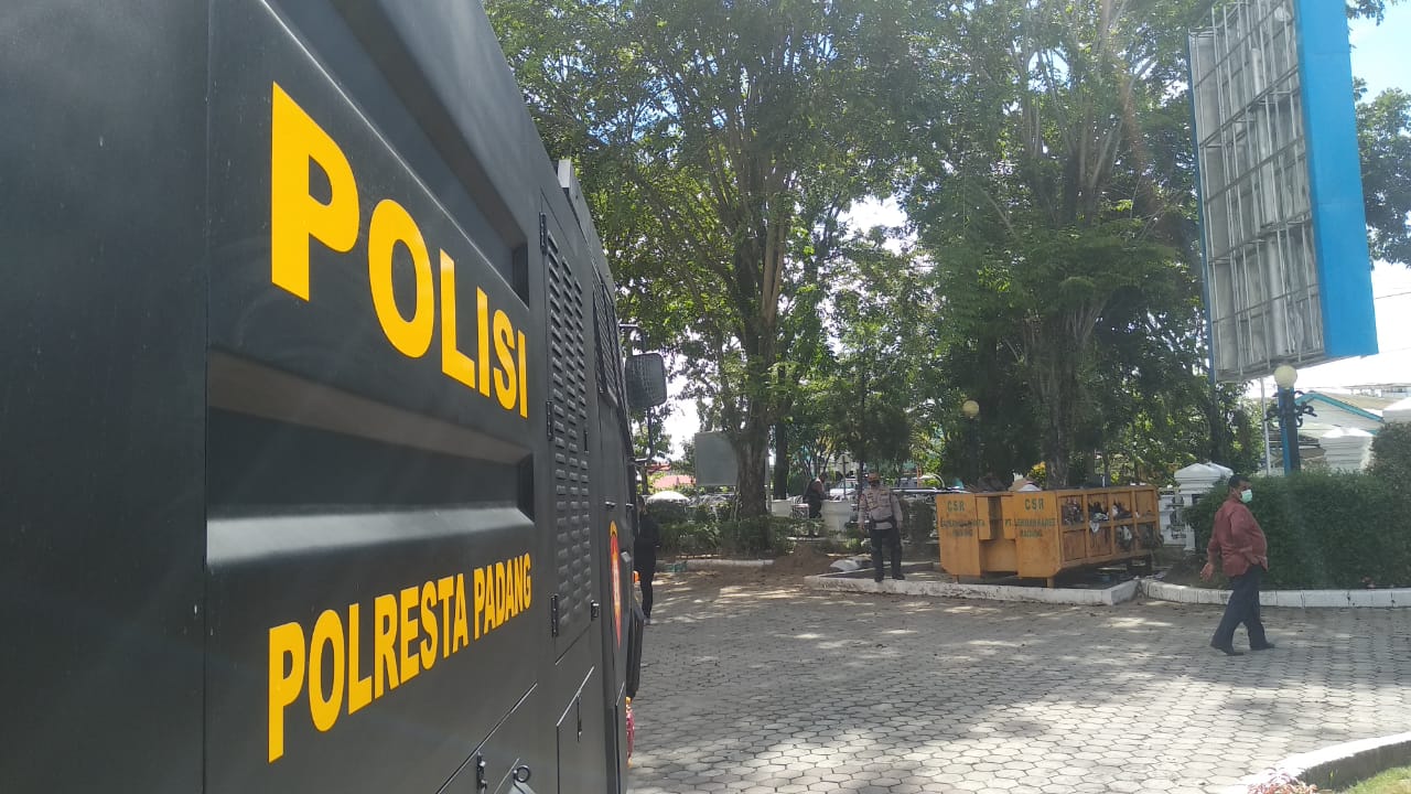 Langgam.id – Petugas kepolisian melakukan penjagaan di Gedung Dewan Perwakilan Rakyat Daerah Provinsi Sumatra Barat (Sumbar). Hal itu dilakukan sebagai antisipasi aksi unjuk rasa penolakan UU Cipta Kerja yang rencananya dilakukan siang ini.