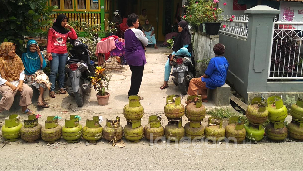 Langgam.id – Antrian tabung gas elpiji berukuran 3 kilogram mengular di salah satu pangkalan di kawasan RT 1 RW 8 Karang Gantiang, Kelurahan Lubuk Lintah, Kecamatan Kuranji, Kota Padang, Sumatra Barat (Sumbar), Jumat (11/10/2019).