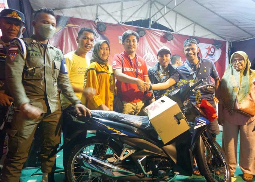 Warga mendapatkan sepeda motor di malam puncak HUT Dharmasraya ke-19. [Foto: Dok. Pemkab Dharmasraya]
