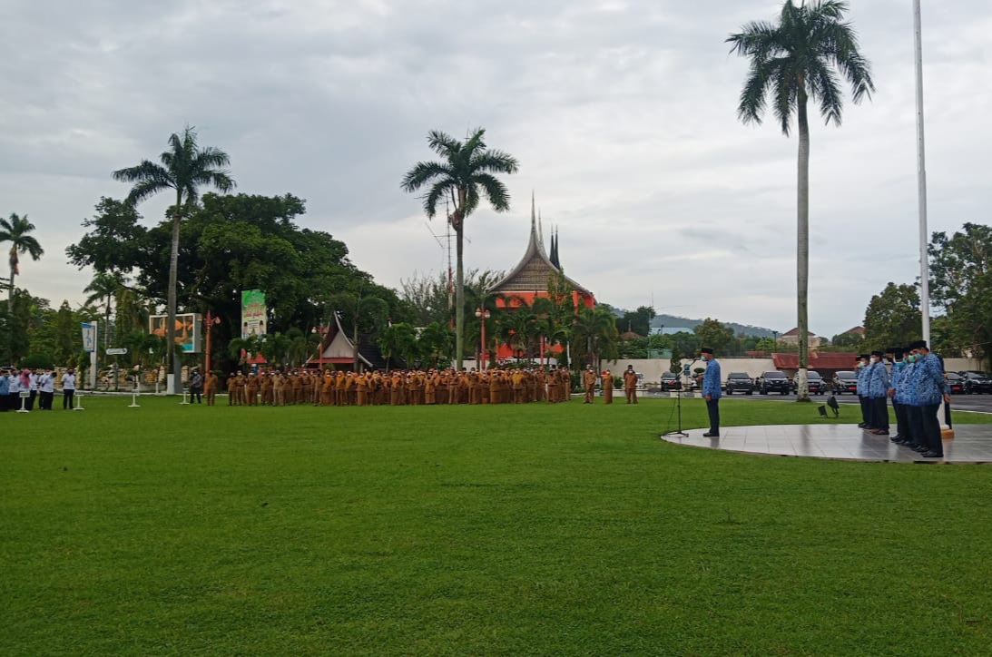 Langgam.id – Pemerintah Provinsi (Pemprov) Sumatra Barat (Sumbar) menggelar apel hari pertama bagi Aparatur Sipil Negara (ASN) pasca libur lebaran Idul Fitri di halaman Kantor Gubernur Sumbar, Senin (17/5/2021) pagi.