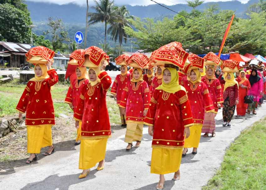 Puluhan jamba dibawa oleh bundo kanduang dengan cara dijunjuang dan arak-arakan tersebut diiringi dengan Tambua Tansa yang dimainkan anak nagari Duo Koto, Kecamatan Tanjung Raya.