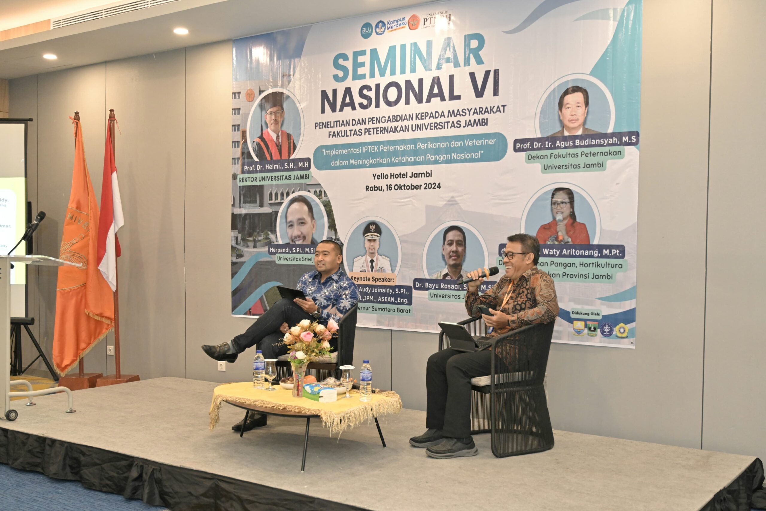 Selain Audy Joinaldy, seminar ini juga menghadirkan narasumber lain seperti Herpandi dari Universitas Sriwijaya, Bayu Rosadi dari Universitas Jambi, dan Meilina Waty Aritonang dari Dinas Tanaman Pangan, Hortikultura, dan Peternakan Provinsi Jambi. Diharapkan, seminar ini mampu mendorong inovasi dan kolaborasi antara akademisi, pemerintah, dan pelaku usaha untuk memperkuat ketahanan pangan nasional.(*/Fs)