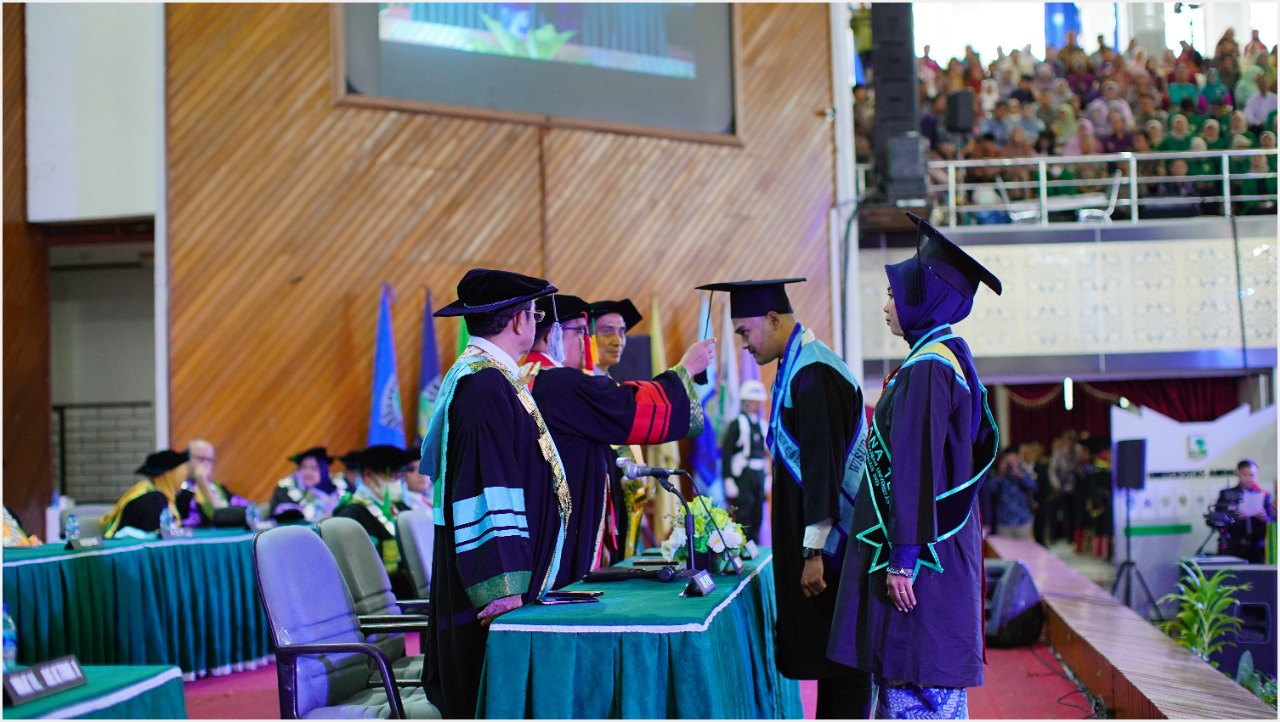 “Selamat kepada seluruh wisudawan yang telah menyelesaikan pendidikan sesuai waktu yang disediakan. Selamat atas gelar akademik beserta hak yang melekat pada gelar dimaksud. Semoga saudara semua dapat menggunakan ilmu dan gelar itu untuk kebaikan dan kemaslahatan orang banyak,” katanya.