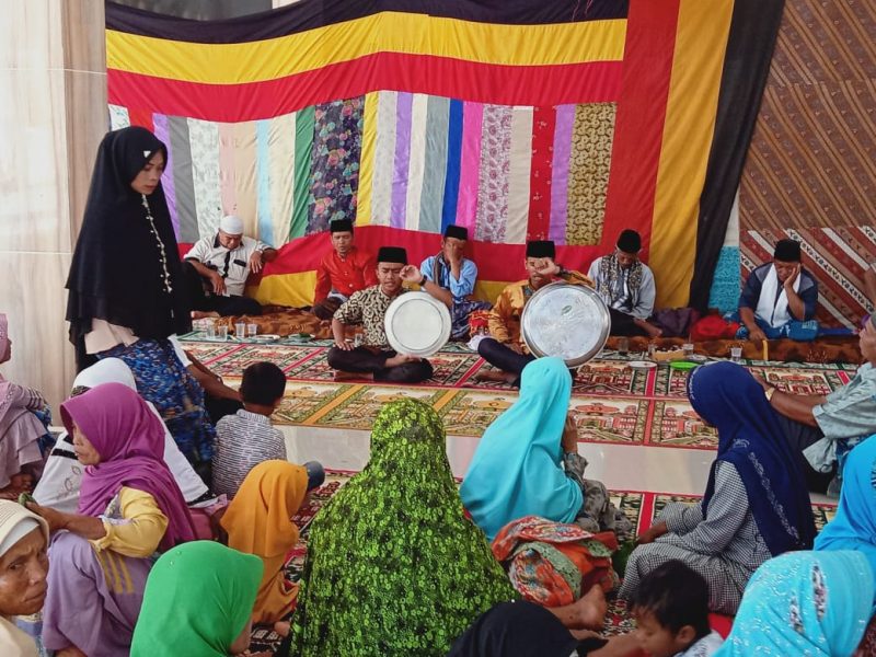Para tuangku menyanyikan dengan suara yang lantang dan merdu menggunakan microphone masjid. Sembari memukul dulang mereka bergantian untuk menyanyikan shalawat.
