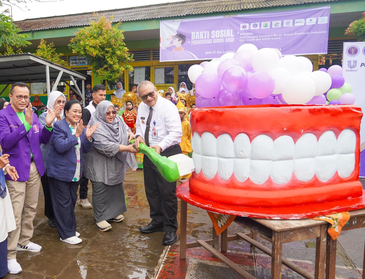 Kick Off bakti sosial pemasangan NAM dan Perawatan Ortodonti Cekat yang disertai Pencatatan Rekor MURI Pemasangan Ortodonti Cekat ini dilakukan langsung oleh Penjabat (Pj) Wali Kota Padang Andree Algamar, di SDN 27 Olo Ladang, Rabu (6/11/2024).