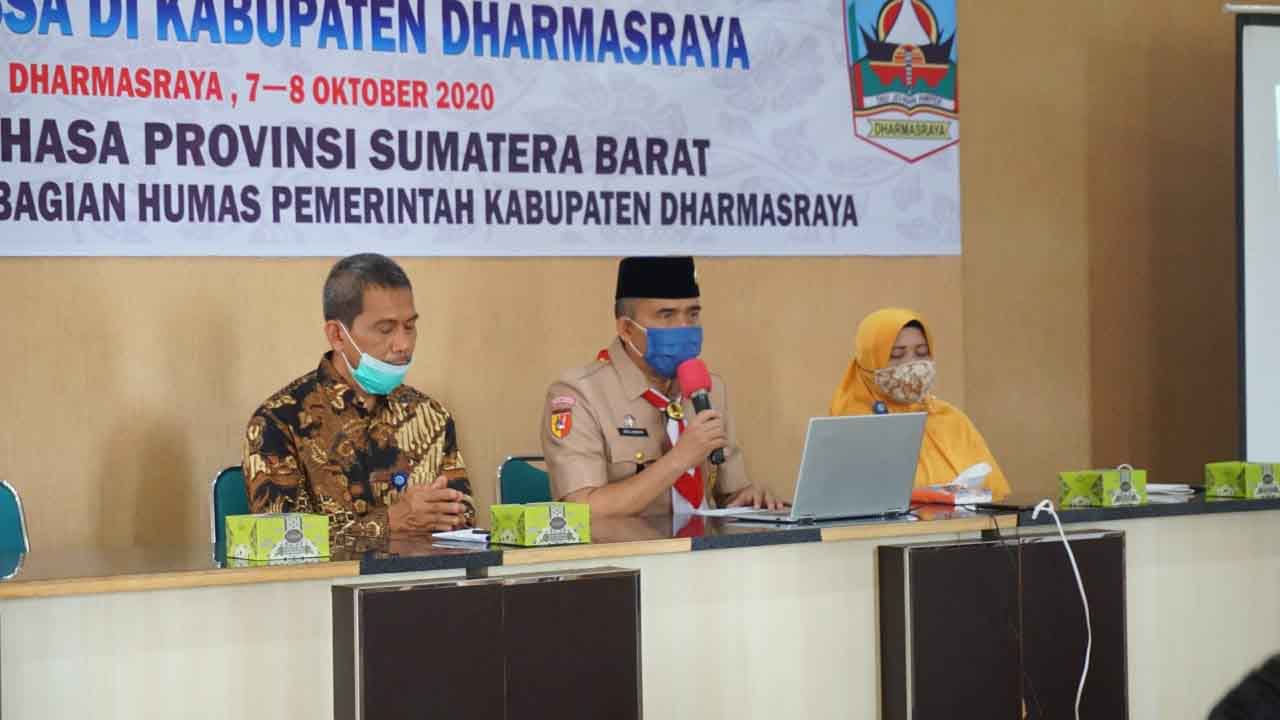 Langgam.id- Dalam menyemarakkan bulan bahasa nasional tahun 2020, Balai Bahasa Provinsi Sumatra Barat bekerja sama dengan Pemerintah Kabupaten Dharmasraya menggelar forum diskusi bertajuk Pengawasan dan Pengendalian Penggunaan Bahasa Media Massa, Rabu (07/10/2020).
