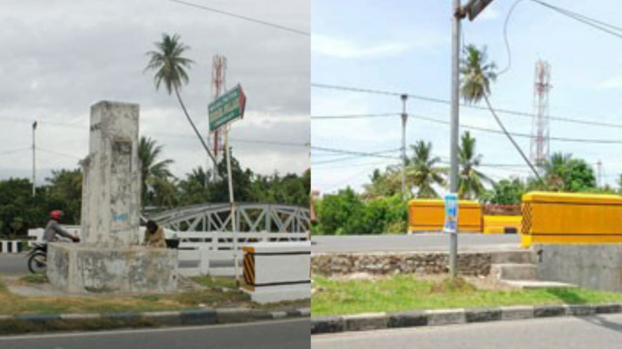 Jembatan lama dan tugu Linggarjati (kiri) dan jembatan baru tanpa tugu (kanan). (Foto: Marsalleh Adaz/Arsip Kota Padang)