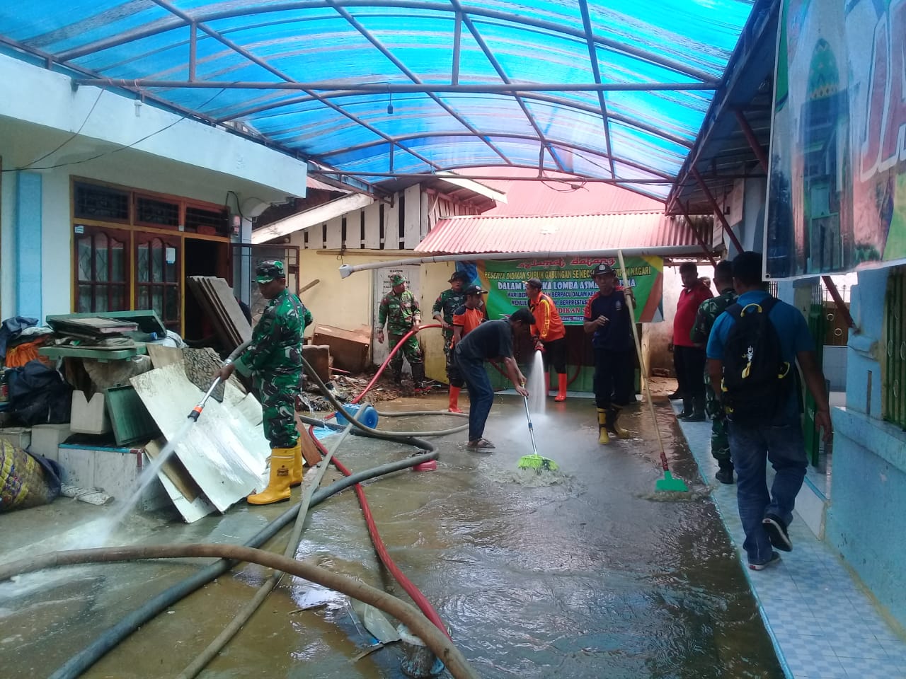 Saat ini, pihaknya bersama masyarakat masih melakukan pembersihan material sisa banjir bandang. Mulai dari masjid, sekolah dan rumah warga.