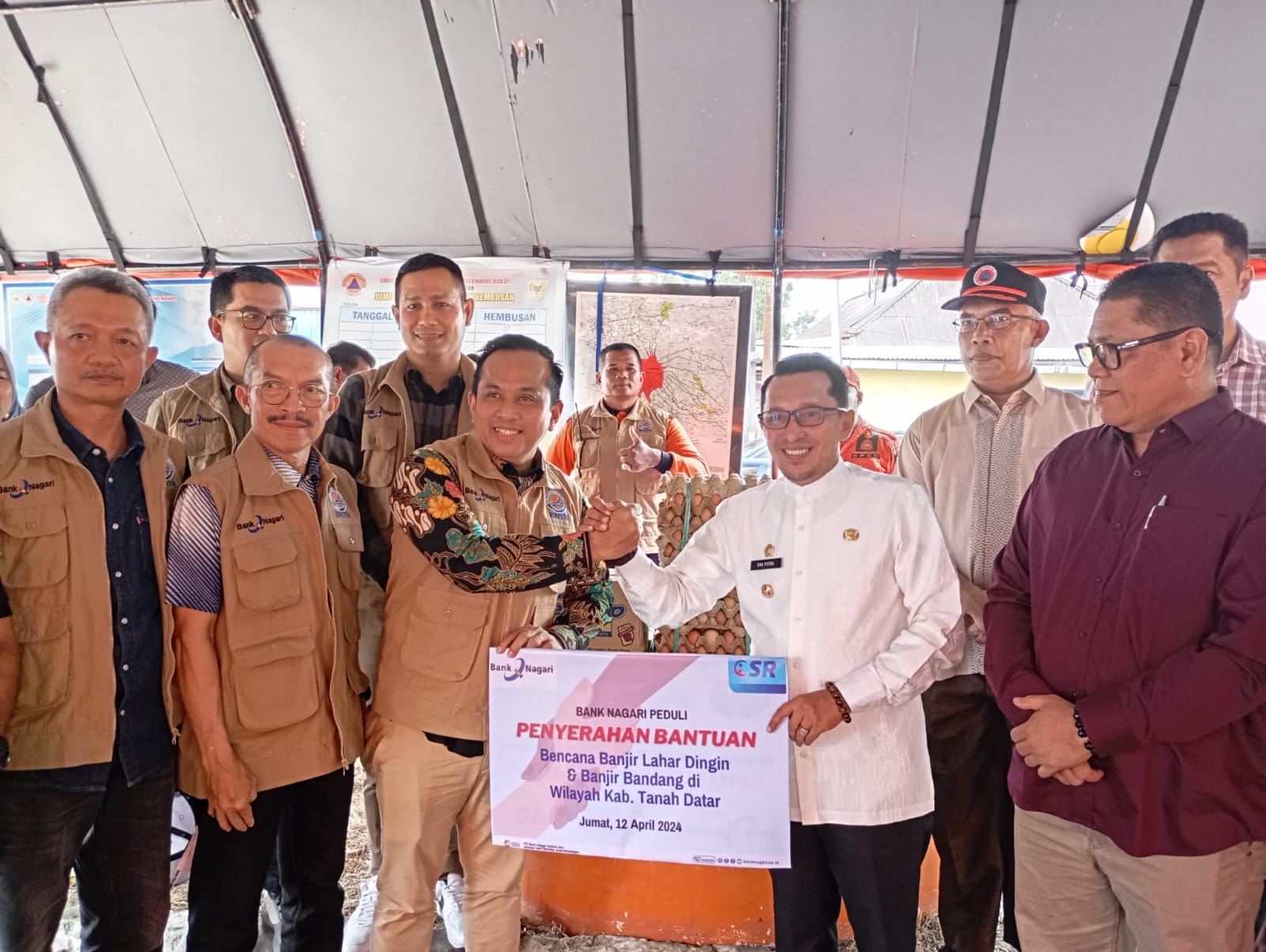 Bupati Tanah Datar, Eka Putra menyampaikan terima kasih atas bantuan dari Bank Nagari Tanggap Bencana melalui Tim Reaksi Cepat. Menurutnya, bantuan ini sangat tepat waktu karena stok kebutuhan pokok di wilayah Tanah Datar mulai menipis.
