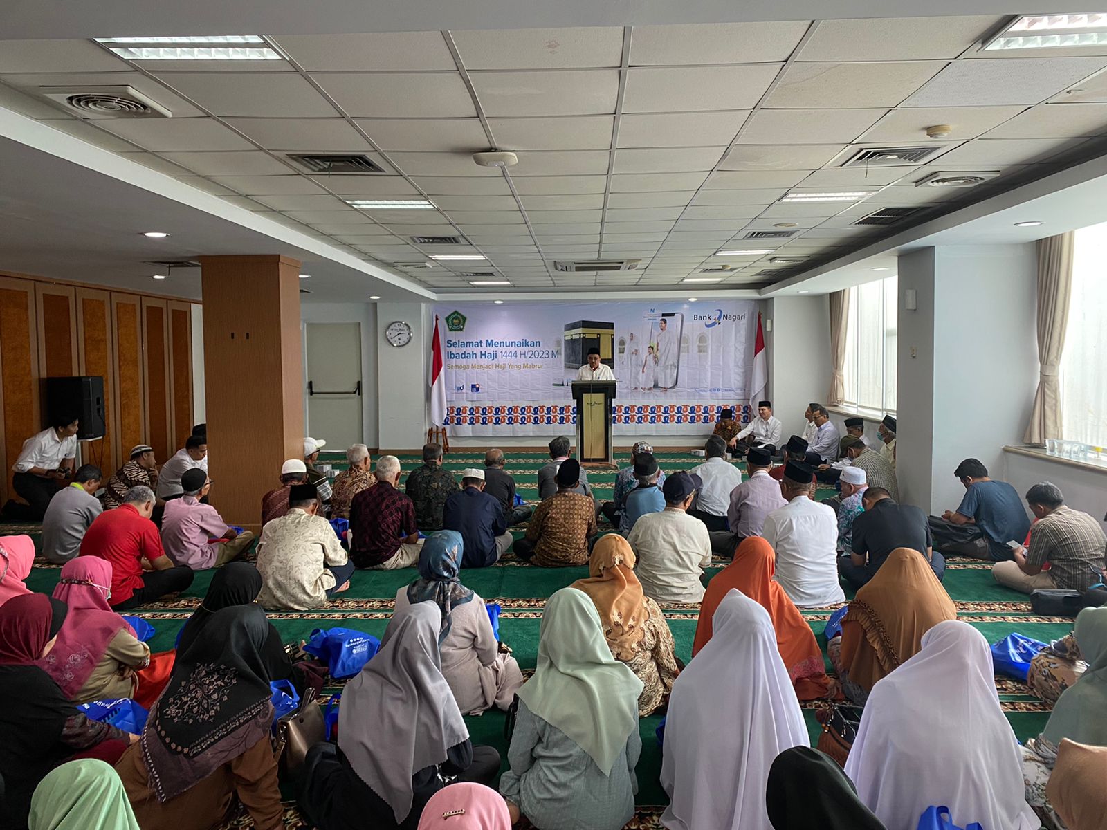 Langgam.id – Bank Nagari melepas keberangkatan 621 orang Calon Jamaah Haji (CJH) secara serentak di seluruh kantor cabang Bank Nagari di Provinsi Sumbar, Selasa (13/6/2023). Di Kota Padang sendiri, pelepasan CJH dilaksanakan di Kantor Pusat Bank Nagari Jalan Pemuda Nomor 21.