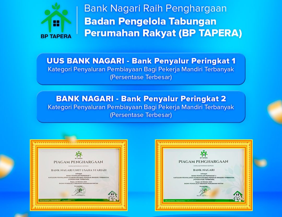“Penghargaan ini merupakan bukti nyata komitmen Bank Nagari dalam mendukung program pemerintah di bidang pembiayaan perumahan, khususnya bagi masyarakat berpenghasilan menengah dan pekerja mandiri di Sumatera Barat. Kami akan terus berinovasi dalam memperluas akses pembiayaan agar semakin banyak masyarakat yang dapat memiliki rumah layak huni,” ujar Gusti Candra.